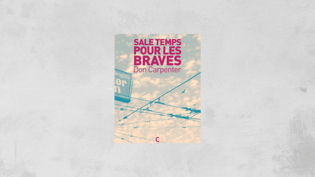 J’ai rencontré Don Carpenter dans ce contexte, et je ne le regrette absolument pas ! Auteur assez méconnu en France, il est pourtant le créateur d’une oeuvre unique, où les marginaux, repris de justice et autres profils atypiques y ont une place importante. Écrivain et scénariste contemporain de la Beat Generation, ami proche de Brautigan, Carpenter a marqué son époque en sortant en 1966 l’un de ses chefs-d’œuvre, Sale temps pour les braves, sous son titre original (que je trouve bien plus poétique )Hard Rain Falling.