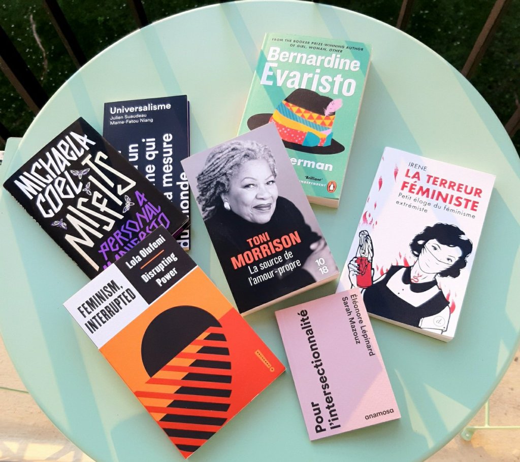 L’idée est simple : j’établis une liste de lectures à l’avance autour, et une fois par mois je fais un retour. Voici la liste des titres sélectionnés cette année, c’est assez varié, cela englobe aussi d’autres sujets comme l’antiracisme et l’activisme, et il y a aussi une fiction (c’est pour l’autrice) :